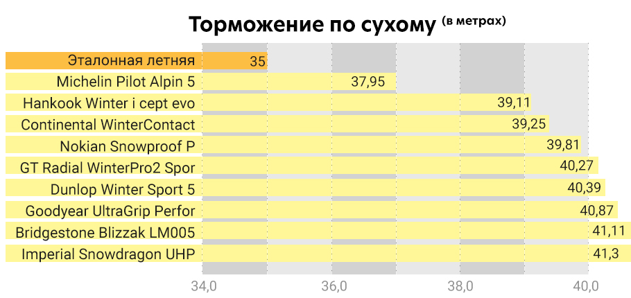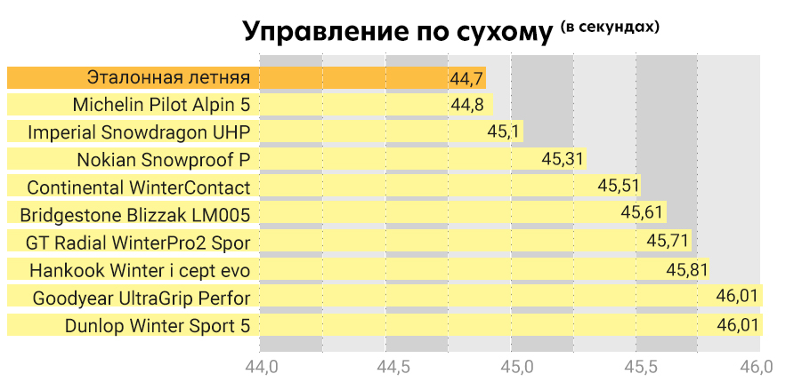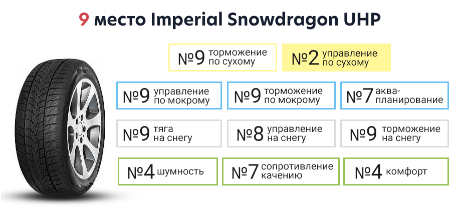 Вторую позицию заняла бюджетная Imperial, тормозной путь которой было относительно длинным, но на поворотах оказалась лучшей среди участниц теста.