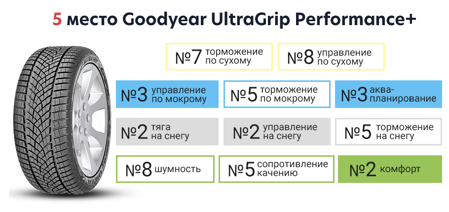 Обеспечивала высокие сцепные свойства на заснеженном и по влажному покрытию, но относительно результатов лидеров теста на холодном треке Goodyear немного не дотягивала. Для премиум сегмента ее цена значительно ниже, чем у конкурентов.